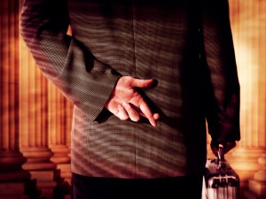 Businessman Crossing Fingers ca. 2001