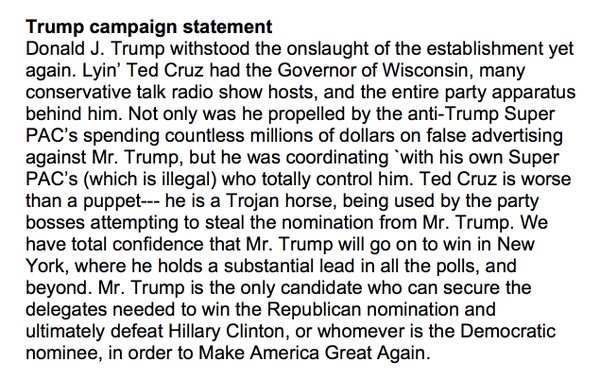 Unethical Donald Trump Quote Of The Day: His Post-Wisconsin Primary Wipeout Statement, Making Richard Nixon Look Classy By Comparison
