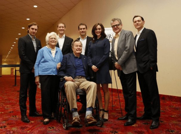 The actress next to President George H.W. Bush in this photo has accused the 93 year-old wheelchair-bound ex-POTUS of sexually harassing her. Heather Lind wrote on her Instagram account,