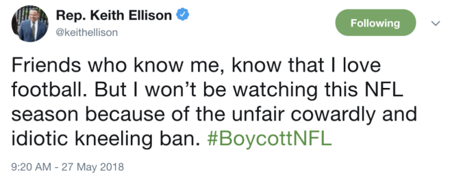 2. Never mind football, what matters most is division and protest. DNC co-chair Keith Ellison actually tweeted this: