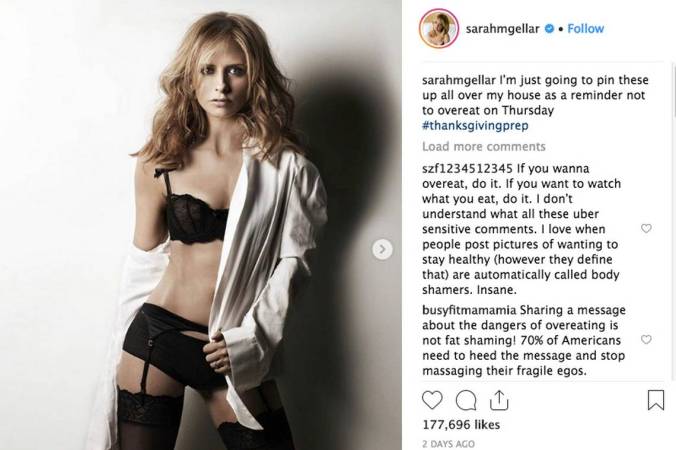 4. It’s a good thing narcissism is no longer considered a mental illness, because Buffy would have it…Sarah Michelle Geller, best and more or less only known for her portrayal of Buffy the Vampire Slayer on the cult TV series, ran away with this year’s Thanksgiving Ethics Dunce title with this post on Instagram: