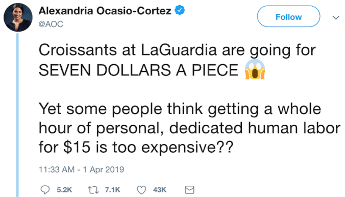 First, let me be clear: Twitter is a swirling cesspool of nonsense and idiocy. But seeing people offer up to Ocasio-Cortez links to less-expensive croissants she can buy from Amazon almost makes the whole data-collecting, thought-policing, brain-deadening exercise worthwhile.