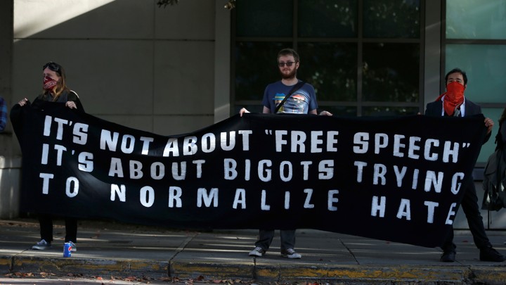 Opposing factions gather over the cancelation of conservative commentator Ann Coulter’s speech at the University of California April 24, 2019April 24, 2019 / Jack Marshall