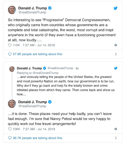 Here’s another: If diversity is so wonderful, why are all these people fleeing these wonderfully different countries and coming to the bland, monolithic, white supremacist United States to seek asylum and sanctuary from their persecutors? They’re fleeing their countries, which are an embodiment of their cultures, but they want to recreate that culture here, rather than adopt the culture that’s already here? Makes not sense. Trump’s tweet makes sense. The pot shouldn’t be calling the kettle black. (I’m sure that’s a racist thought. Hah.)