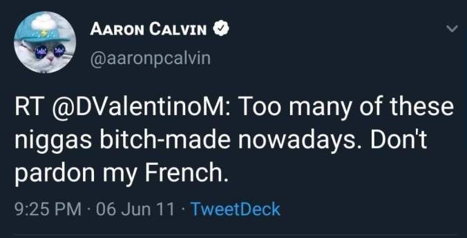 • Act Four: Aaron Calvin, the creep Iowa Register reporter who went looking for dirt in reluctant public figure Carson King’s twitter account, resulting in his newspaper publishing racist tweets from when the 24-year-old was a teen, apparently had not heard the old saw about glass houses. Someone went fishing in Calvin’s social media accounts, and found this, among other ugly statements: