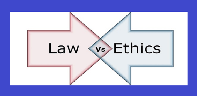 I’m an ethicist and a lawyer, and there is a necessary tension between those roles. One reason I left the field of criminal law was that I found criminal law practice, one either the defense side or with the prosecution, ethically incoherent. Ethics needs to guide the law, and the laws should be based on ethics, but individuals cannot be permitted to use their ethics, or a separate morality (law is essentially a government-dictated morality) to rationalize disobeying a society’s laws and avoiding the statutory penalty for doing so.