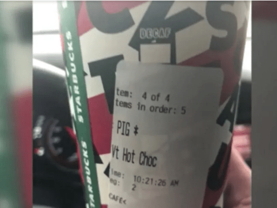 4.  Thanks, Colin Kaepernick (and Black Lives Matter, “Hand up, don’t shoot!” and Barack Obama…)! An on-duty Kiefer, Oklahoma police officer dropped by Starbucks on Thanksgiving Day to buy drinks for his department’s 911 dispatchers who were working shifts on the holiday in the town of . Every cup in the order was labeled with the word “PIG.” When Kiefer Police Chief Johnny O’Mara, called the Starbucks location and spoke with a manager, she offered to relabel the cups.