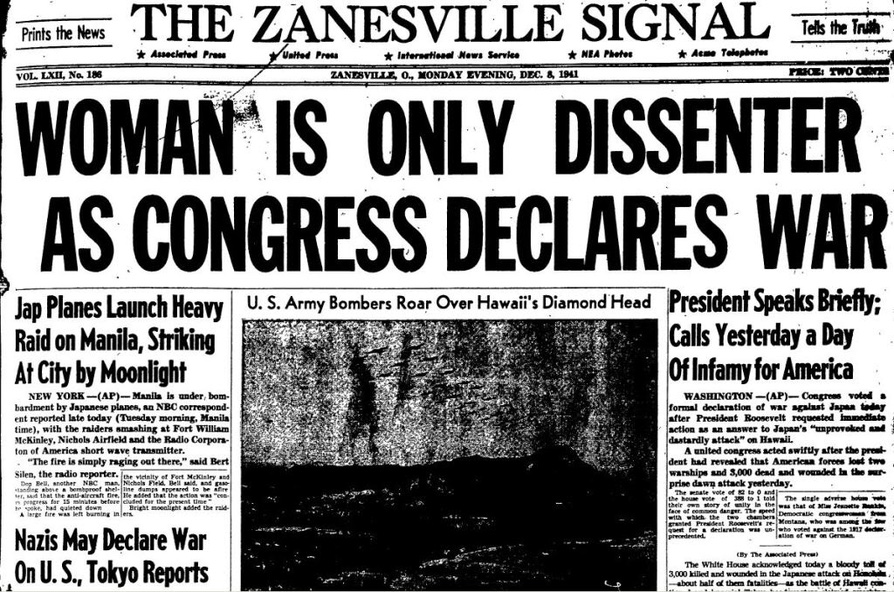 Jeanette Rankin, The Pearl Harbor Ethics Dunce