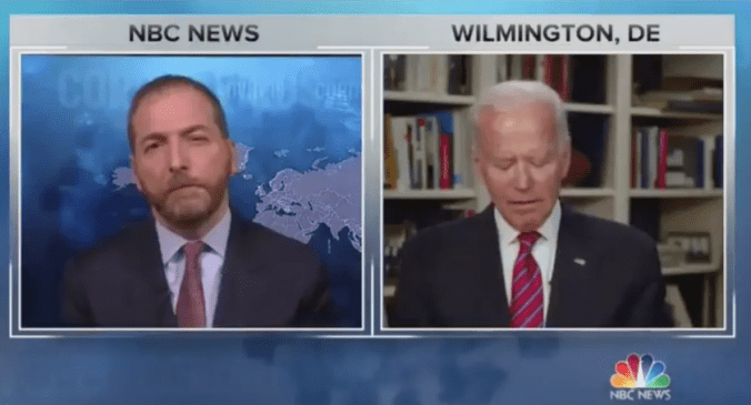 Joe Biden was being interviewed (I have excised here a good, fair but tasteless joke about what Todd interviewing Biden resembles) and Todd asked this despicable question: