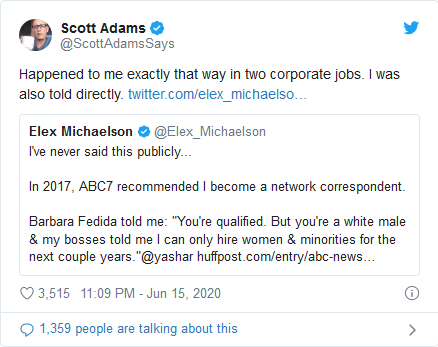 At the time, and I have always been this way, I felt that I had advantages that many people, including many African Americans, did not. I believed that I was the perfect sacrifice to affirmative action, because I had diverse skills, enjoyed risk-taking,  I had a strong support network, including my family, and I’m a cocky son of a bitch, and almost always optimistic. Some would call that privilege. However, every white citizen doesn’t have the options and advantages I did (and do). Moreover, the fact that I accepted being rejected for my gender and color of my skin doesn’t change the fact that it is wrong, and a divisive, toxic policy over the long term.