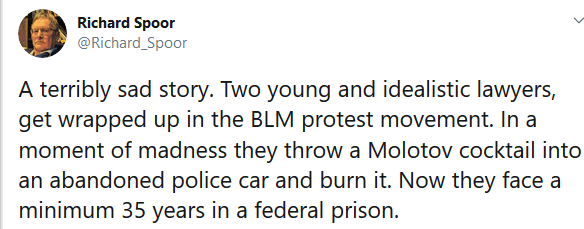 Does Spoor’s rationalizing thinking give the two Molotov cocktail throwing lawyers a viable temporary mob insanity defense?