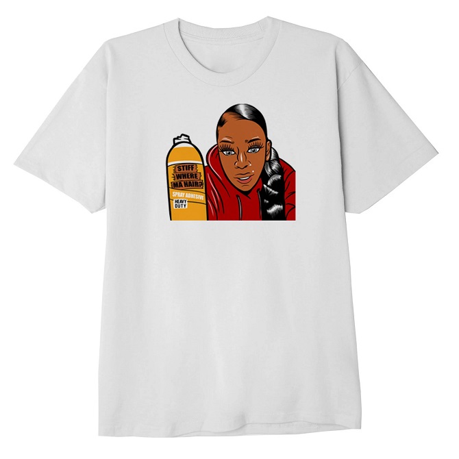 …and related merchandise like this, the “Where Ma Hair?” T-shirt featuring an image of Tessica from her infamous video: