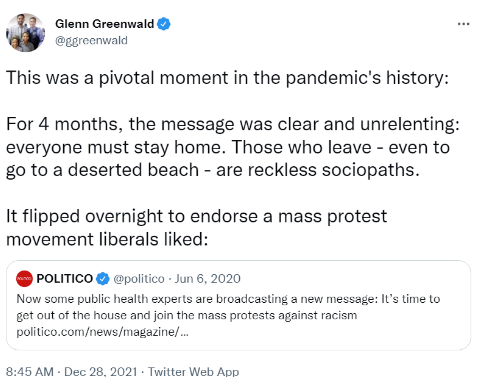 5. But…but…why do they distrust the experts? And the science! This tweet by Glenn Greenwald re-opened this scandal, which the mainstream media has an obligation to cover but has not: