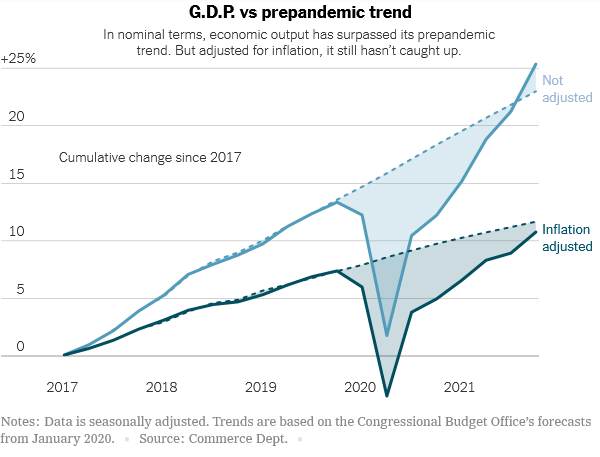 “‘The contrast between how the economy is doing on paper and how it feels on the ground has made it difficult for Mr. Biden to capitalize politically on what has been, by most measures, a historically strong economic recovery even after accounting for rising prices,’ the piece states.”