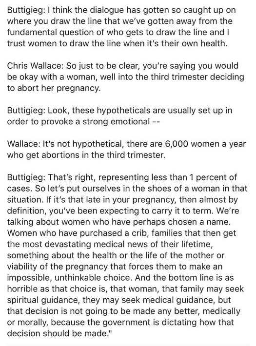 Chris Wallace has a marginally deserved reputation for asking tough questions and yet failed to ask maternity-leave-Pete what is so unreasonable about legally/culturally demanding that women must decide if murder is something they are willing to sanction, *within the first trimester.* BFD!