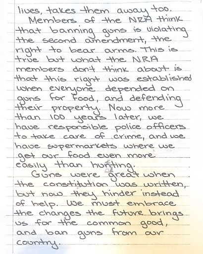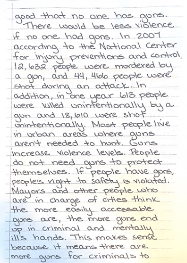 2. The whole assignment is toxic dung heap because any 5th grader who does challenge the essay will get suspended or expelled for “making threats” by speaking of guns in “any-anything-but-horrified” light. The average 5th grader would not be able to challenge that loaded crap with skill, but they might still recognize it as a bad-faith arguments, and get themselves in trouble by responding to this deliberate crap with the intelligence of a real fifth grader. Some truly poor souls might naively parrot back the strong opinions of their parents, thus throwing gasoline of this self inflicted fire.