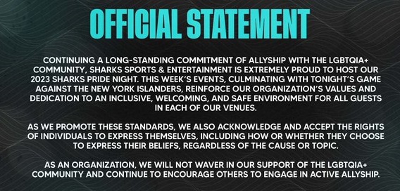 The NHL and the Sharks are the ethics villains here for putting their players in this position. The Sharks tried to both double down and weasel out, issuing this:
