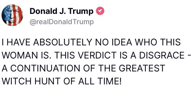 Even if this get’s thrown out on appeal the left’s droning mantra will be that the jury judged Trump guilty of sexual assault. Jean Carroll is likely going to make a lot of money once she starts her anti-Trump media tour.