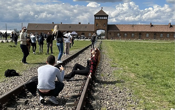 When I was taking students to Ireland, some of them were intent on climbing over gravestones at a holy site on Inis Mór to get a better backdrop for their selfies. This isn’t the same as chuckling it up at the site of a concentration camp, but it was certainly disrespectful and more than a little creepy.