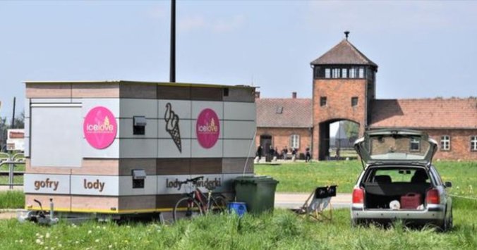 That’s an ice cream stand just outside Poland’s shrine to the victims of the Holocaust, the Auschwitz death camp. Isn’t it nice that tourists there will be able to grab a delicious ice cream cone for refreshment? Now here…