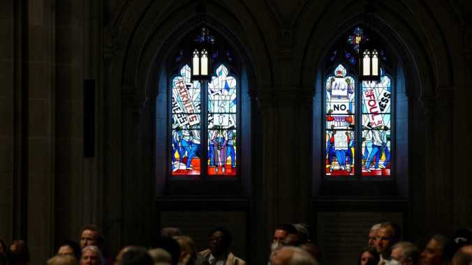 In addition, I look at this from the Catholic standpoint of stained glass typically showing multiple scenes of import or people to be admired. From that standpoint, I can come up with many better pictures for an attempt at a mostly apolitical set of windows. If one wants to tell the history of slavery even, I have some great ideas. I think our history has more important matters than that, but I’ll give the slavery a shot first. Of course, all of these will have to be simplified for the material of stained glass, but we have had Jesus feeding the multitudes on stained glass for centuries, not to mention all the other Bible stories. A true student of stained glass can simplify anything and do so meaningfully.
