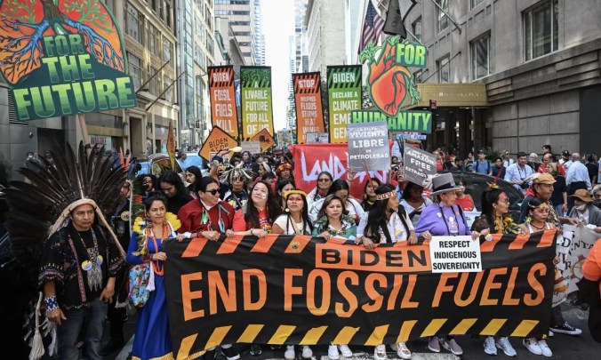“We hold the power of the people, the power you need to win this election,” said 17-year-old Emma Buretta of Brooklyn of the youth protest group Fridays for Future. “If you want to win in 2024, if you do not want the blood of my generation to be on your hands: end fossil fuels!”