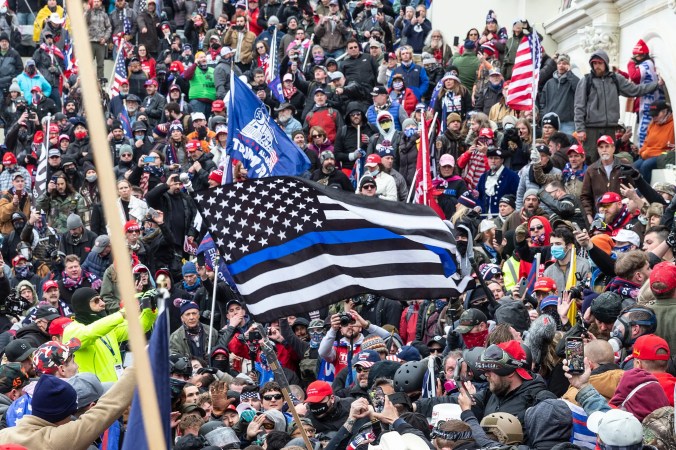 The thin blue line flag would seem to be a poor choice to symbolize white supremacy, white nationalism or any other segment of violent extremism.
