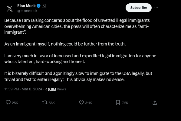 3. From the res ipsa loquitur files: Elon Musk on illegal immigration: