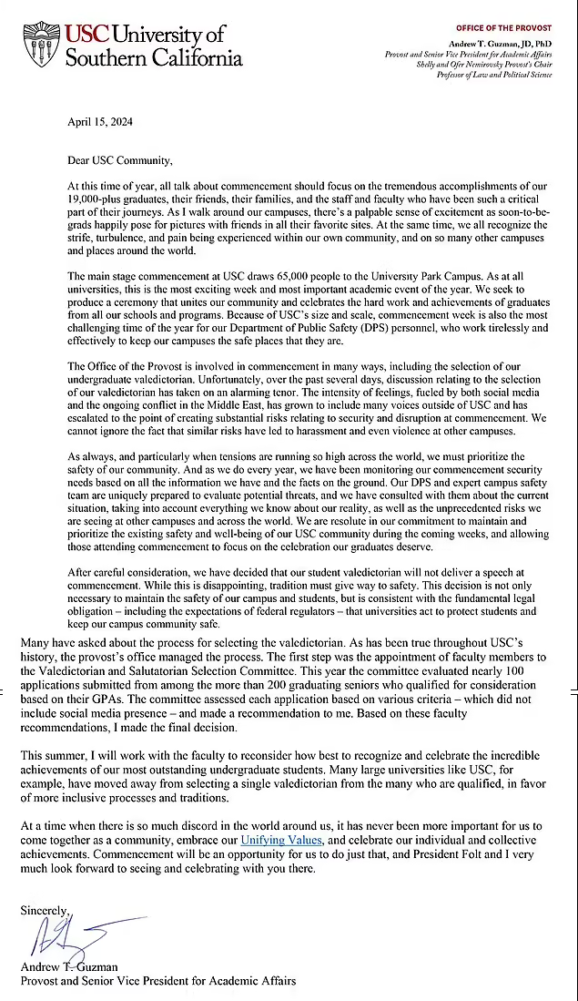 Ethics Zugzwang as USC Silences Its Valedictorian