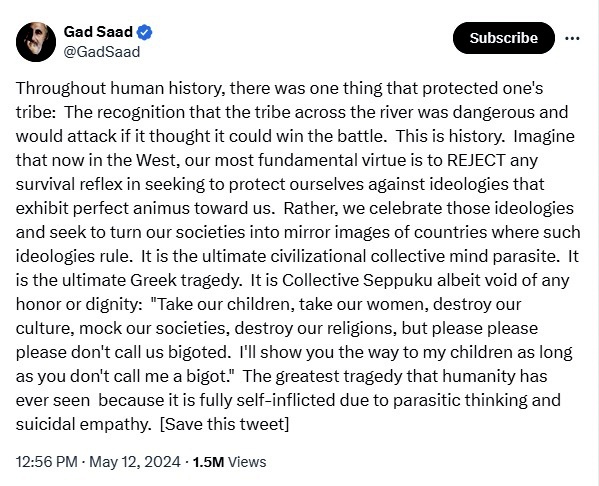 We didn’t lack for things to talk about—there was my wife’s sudden death, of course, but we also know so many of the same people and have many similar interests. I don’t think in all the years we have known each other, political topics have ever come up. But we got on the topic of our kids and our friends’ kids, my son’s decision to eschew college, and from that onto the recent disaster at Harvard, as Micah mentioned in passing that my having a degree from there “didn’t hurt.” My brief but detailed exposition in response regarding Harvard’s ethics rot led to his off-hand comment, “The stuff around the war in Gaza is really upsetting.”