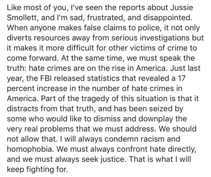 Jussie’s ridiculous story fell apart quickly, and anyone who immediately accepted his tale as true was and should have been embarrassed. Harris posted this follow-up: