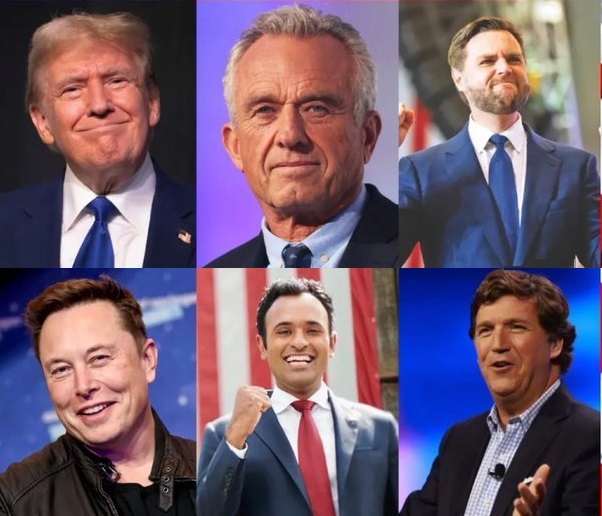 2. I have seen numerous collages like this, but most put Tulsi Gabbard in for Tucker Carlson. That makes a much more interesting point. What I see then are a bunch of former Democrats (except Vance) who are now considered alt-right dangers to democracy<sup>TM</sup>.