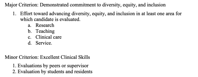 The criteria are posted on Brown’s website. They list a “demonstrated commitment to diversity, equity, and inclusion” as a “major criterion” for all positions within the Department of Medicine. Clinical skills only count as a “minor criterion” for many roles…See?