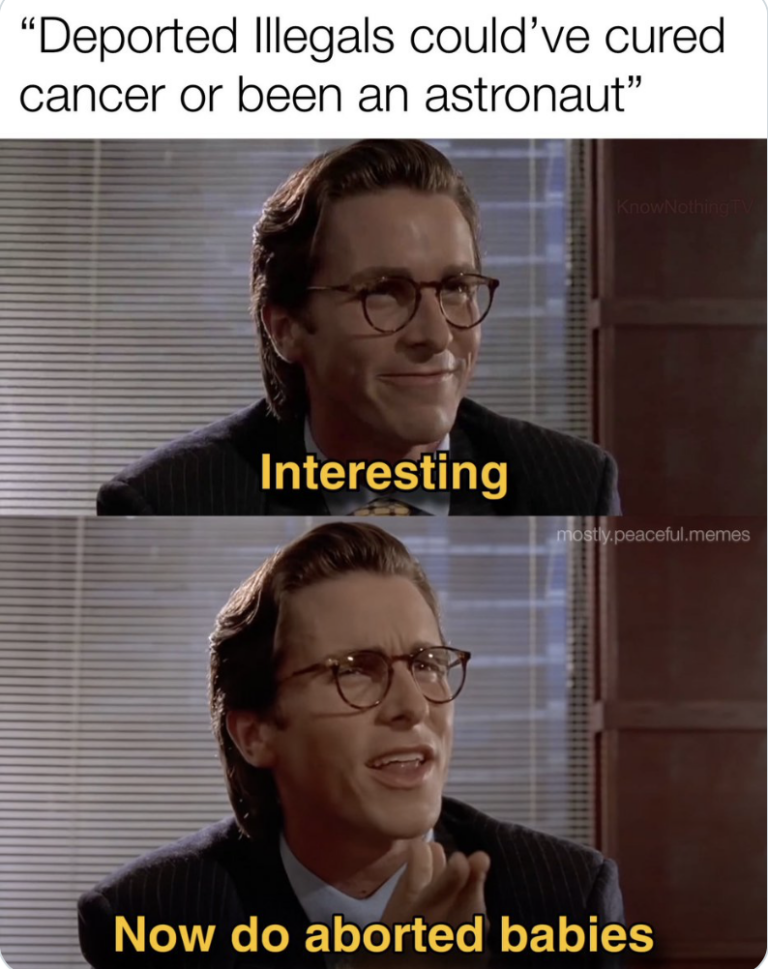 2. Yep. The child that might cure cancer or save us from the asteroid is far more likely to have been aborted than deported.