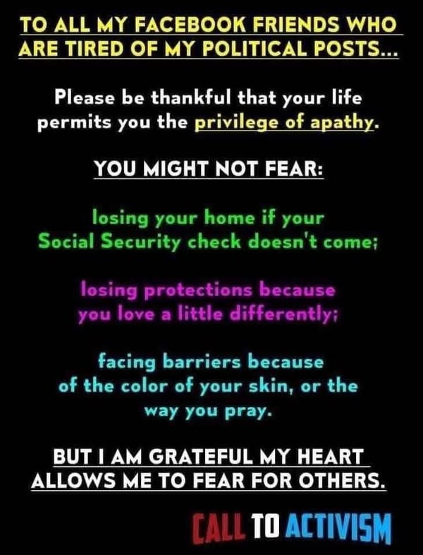 4. I think the real solution to this situation is to get off Facebook and get better friends. If you login and pay attention to this crap, you’re the one most affected by it, not them. Trying to be “social” on FB is like trying to get milk at the hardware store. We know the platform is meant to squeeze out this kind of reactivity so why reinforce the power of the platform by engaging in it. Go look at dog videos or something that lowers your blood pressure rather than raise it.