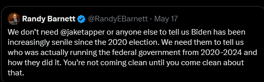Meanwhile, Prof. Randy Barnett’s post on Twitter/X is being widely quoted (including by me), as it should be: