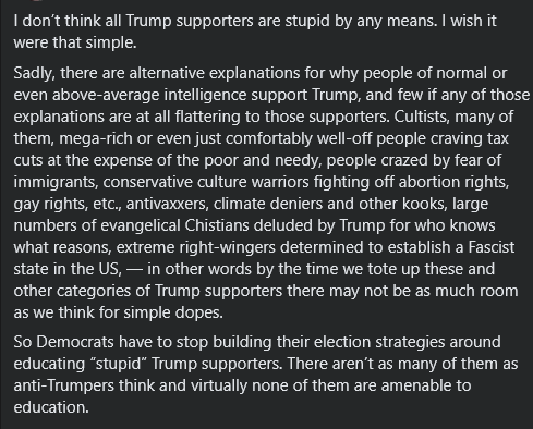 I am distraught. The meme above was posted with approval by a elite college history professor I have known for 50 years. I know he’s smarter than this, wildly so, and that he would flunk any student exercising such poor critical thinking skills in an essay or thesis. So how did he come to post such obvious crap, and how can he be helped?