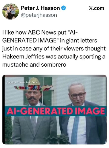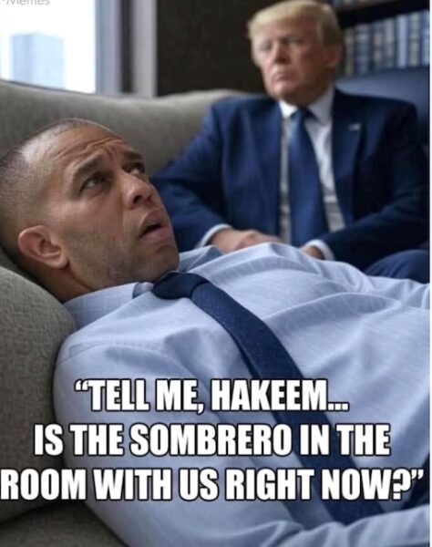 6. On sombreros...Is it really racist to make memes showing Democratic leaders in sombreros and Frito Bandito mustaches to symbolize their support of now expiring Obama health care subsidies that are available to non-citizens? Memes are just modern political cartoons and they communicate in symbols and satire exactly the same way. The “Racist!” defense to legitimate criticism is apparently evergreen on the progressive side: when a metaphorical shot hurts, the default defense isn’t facts and logic, but to cry racism.