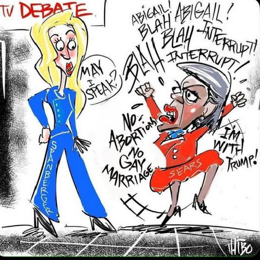The cartoon actually could be interpreted as racially motivated as in “Sears is just another uppity minority who thinks the rules don’t apply to her.” I suspect that was undertone of the cartoon. Sears did not act petulant in that debate.