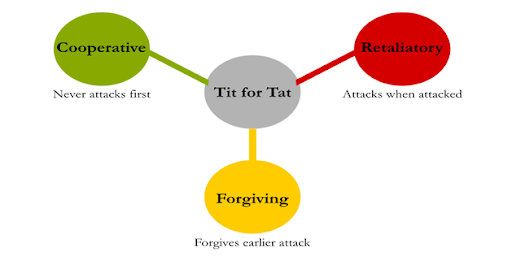 When the tit-for-tat strategy does not work as intended, and the opponent keeps defecting than the game actually becomes an iterative prisoner’s dilemma. In a prisoner’s dilemma game the only optimal move is to defect. In an iterative prisoner’s dilemma the optimal strategy is to continue defecting until the opponent breaks the doom loop with a cooperative move.