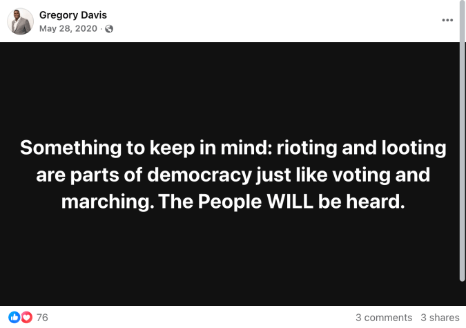 [Davis] wrote in the Wednesday email that the posts “do not reflect my current thinking or beliefs.”