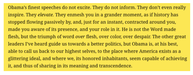 5. Glenn Greenwald—you know, the guy who took my money to subscribe to his substack and then stopped writing it for months without offering a refund?—mockingly posted this excepts from an Ezra Klein slobber over Barack Obama’s oratory…