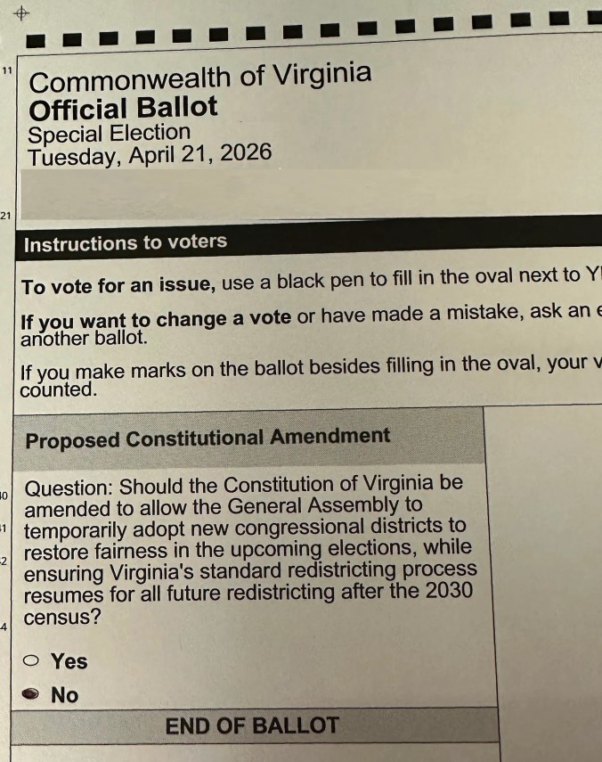 Tomorrow, Virginians (like me) will go to polling places to decide whether to vote for a “proposed constitutional amendment.” Note that the proposed amendment isn’t included on the ballot. This is because Democrats, who dominate the state government cheat. There is no other way to explain this.