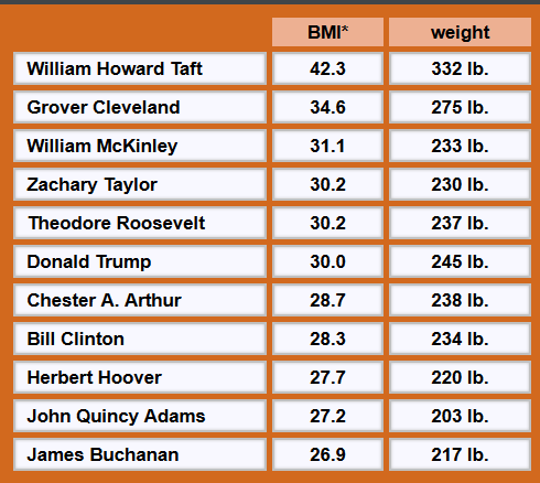 In addition to being the second most obese President, Grover Cleveland suffered from many maladies while President, most notably cancer, necessitating a secret operation that replaced his upper palate with a rubber prosthetic. My favorite obscure President, Chester A. Arthur, was ill during his entire three years in office, and died shortly after. He had progressive kidney failure from Bright’s Disease.
