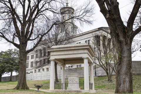 A year later, Polk was removed from the mass grave and buried on the grounds of his Nashville home, Polk Place, in accordance with the will he drew up five months before his death. Polk, a lawyer, stipulated that his body and that of his wife be buried there, and that after his death and his wife’s, the property should be held in trust by the state, which would be bound allow a blood relative to live there. Unfortunately for the dead Polks, the ex-President made a tyro’s drafting gaffe. After Polk’s widow Sarah died in 1891, a court voided the terms of the will because it violated the common-law Rule Against Perpetuities: a property owner can’t bequeath property to unborn future generations. So Polk Place was sold to private interests, eventually razed, and today there is a boutique hotel on the property. On Sept. 19, 1893, Polk’s body and Sarah’s were moved again, to the Nashville grounds of the Capitol.
