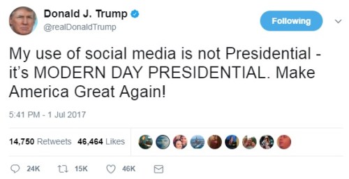 One other caveat: Trump would definitely be establishing new Presidential norms were his tweets less obnoxious and embarrassing. By the time his term(s) are over, he mat have given Presidential tweeting such a bad reputation that no future POTUS will dare use Twitter for fear of being compared to the Mad Tweeter of 1600 Pennsylvania Ave.