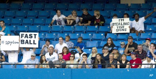 Sign-stealing on the field, using just eyesight and hands, is what players call “the game within the game.” Joe Girardi, the Yankee manager, said in an interview yesterday that he just assumes every team is trying to steal signs, whether they are or not. Continue reading →