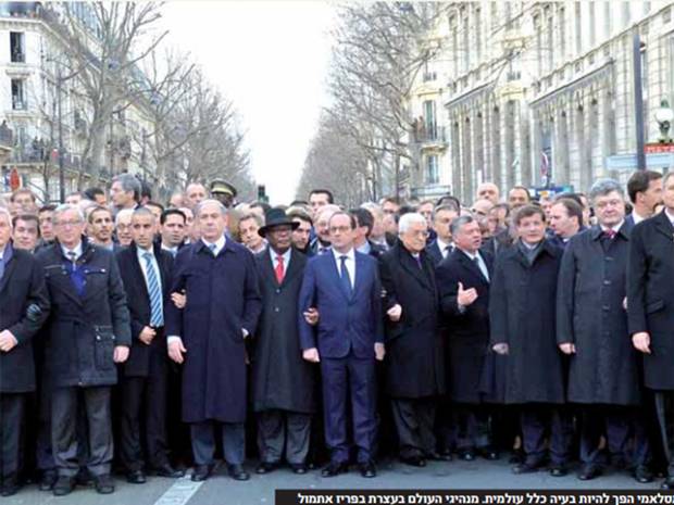 Why, it’s all the women! German Chancellor Angela Merkel, Danish PM Helle Thorning-Schmidt, Paris Mayor Ann Hidalgo and the High Representative of the European Union for Foreign Affairs and Security Policy Federica Mogherini were all photoshopped out of the Israeli newspaper.