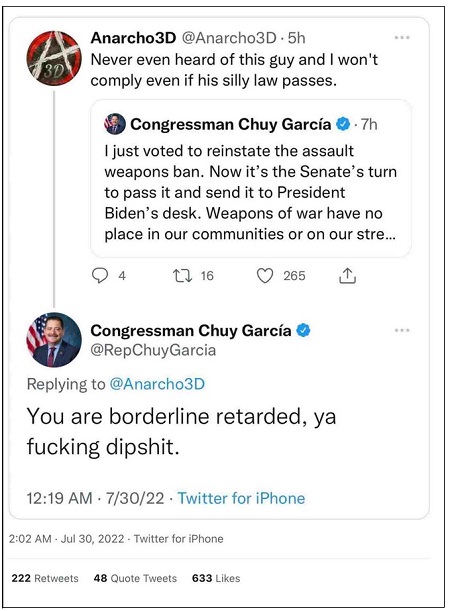 Second, and most embarrassing of all, is the ineptitude of Rep. Sanchez and her staff, which obviously was ordered to do a deep dive into the social media accounts of the whistleblower witnesses in the Weaponization committee hearings to find dirt that could be used to discredit them. They found the wrong Twitter account, and yet Sanchez, adopting the accusatory approach and tone of Joe McCarthy, used a tweet from it anyway, demanding to know if the witness “agreed” with the mystery tweeter’s sentiment. Then Sanchez ended her self-humiliating questioning as if she had proven something other than the fact that she is an unapologetic fool.