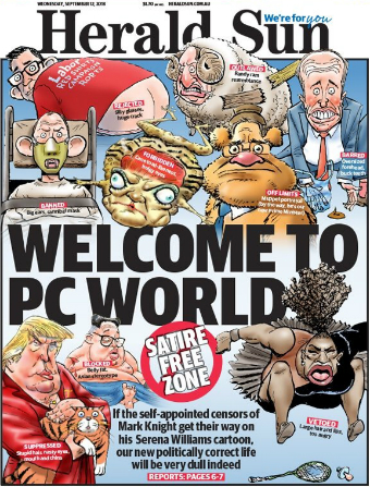Popular Australian Broadcaster Neil Mitchell, among others, defended Knight, saying, “This shows an awful misunderstanding of Mark Knight and this country. I looked at that cartoon and it didn’t even cross my mind it was about race. It was a sports bully, a petulant child throwing a tantrum about losing…I drew her as an African-American woman. She’s powerfully built. She wears these outrageous costumes when she plays tennis. She’s interesting to draw. I drew her as she is, as an African-American woman.”